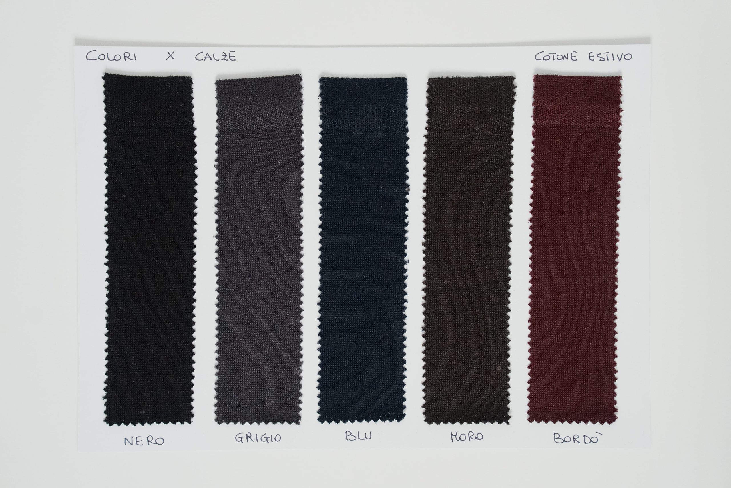 Seleziona ora il colore delle calze, la taglia e il colore della firma filata. Inserirai le tue iniziali successivamente nelle note d’ordine, prima del checkout.